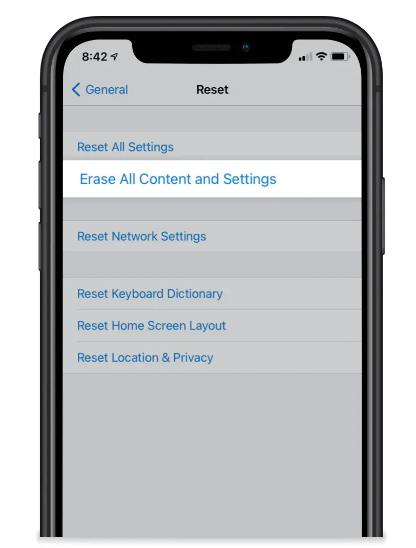Before you reset your iPhone, we recommend backing up any photos or data you may want for later use.